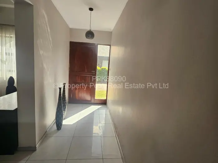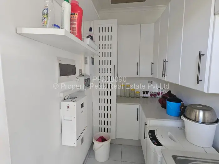 This beautiful ,neat and cosy apartment offers 3 bedrooms, main ensuite, lounge cum dining, open plan kitchen with fitted gas stove and hob, separate bathroom and toilet, 3KVA solar system, communal borehole and alarm system, gas geyser, carport, paved, walled and gated. In a complex of 5 Apartments, with Parent Deed.