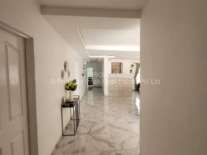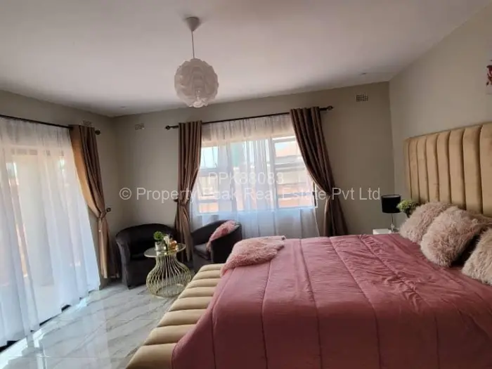 Comprising of 5 bedrooms, 3 ensuites, 1 with own entrance, 2 lounges, dining, bar area, modern fitted kitchen, separate bathroom and toilet, scullery, pantry, 3. 5KV solar back up, solar geyser, functional borehole, double garage, walled and gated. Gvt Nostro accepted