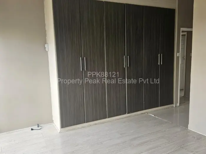 Stylish 3-bedroom, 2-bath garden flat in Newlands, Harare North 100 m under roof on a 300 m stand. This neat unit sits in a walled, well-kept complex with main road frontage, 24hr security and paved driveways with covered parking and a single garage visible from the front. Inside youll find an open-plan living area with large curtained windows, tiled floors and a comfortable lounge that flows to a modern fitted kitchen with dark cabinetry, built-in oven, extractor and space for a full-size fridge. A separate scullery/back kitchen and sink leads to a private courtyard. The main bedroom includes an en suite; second bathroom serves the other bedrooms. Extras include a verandah, municipal water, good ZESA supply backed by a solar system for reliable power, and tidy communal gardens. Single lockup garage. The property is ideal for professionals or a small family wanting security, convenience and contemporary finishes arrange a viewing today.