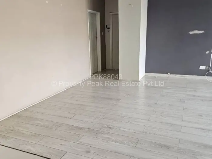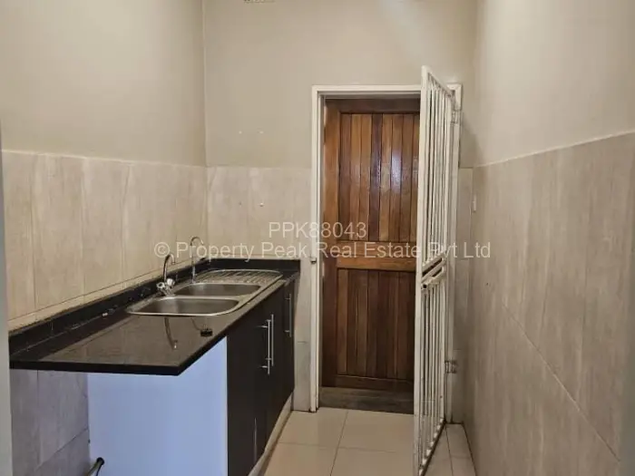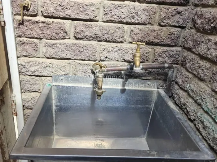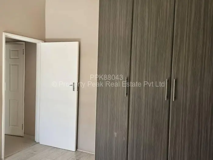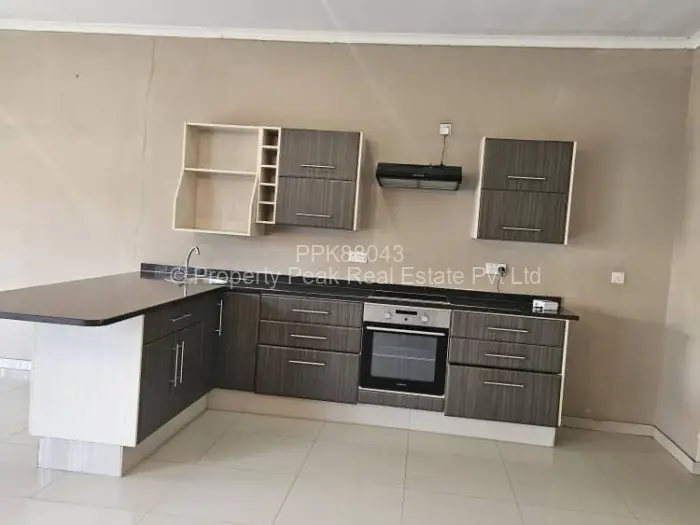 Stylish 3-bedroom, 2-bath garden flat in Newlands, Harare North 100 m under roof on a 300 m stand. This neat unit sits in a walled, well-kept complex with main road frontage, 24hr security and paved driveways with covered parking and a single garage visible from the front. Inside youll find an open-plan living area with large curtained windows, tiled floors and a comfortable lounge that flows to a modern fitted kitchen with dark cabinetry, built-in oven, extractor and space for a full-size fridge. A separate scullery/back kitchen and sink leads to a private courtyard. The main bedroom includes an en suite; second bathroom serves the other bedrooms. Extras include a verandah, municipal water, good ZESA supply backed by a solar system for reliable power, and tidy communal gardens. Ideal for professionals or a small family wanting security, convenience and contemporary finishes arrange a viewing today, very secure complex with 24hr security.